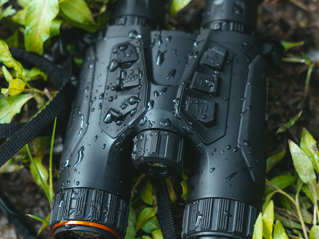 Binoculares multiespectro de alto rendimiento que combinan visión térmica con visión nocturna óptica 4K y telémetro láser integrado. Montan un sensor térmico 640×512 de 12 μm con sensibilidad <20 mK y óptica f/1.0 de 35 mm (detección hasta ~1.800 m), junto a un módulo óptico 4K (3840×2160) para uso diurno/nocturno. Incluyen dos módulos IR intercambiables 850/940 nm, pantallas OLED 1920×1080, memoria interna de 64 GB e IP67.